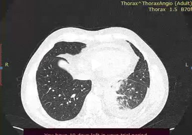 Our 38-years-old male patient was diagnosed and treated as pneumonia at his regional hospital, but after having no improvement, he was transferred for further diagnosis at our hospital.
