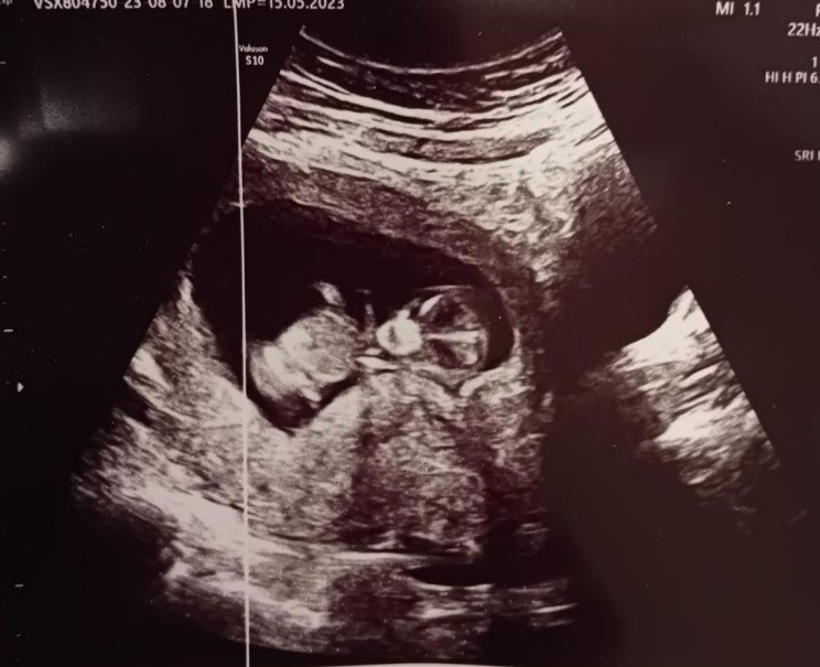 Ultrasound examinations monitoring of fetal growth and development and cervical length were performed every 2-3 weeks. Detailed ultrasound screenings of the fetus were performed in the first (Figure 3) and second trimesters (Figure 4) of pregnancy, infectious screenings by taking microbiological smears and serological analyzes at the end of the first trimester in the 12th week of gestation, biochemical investigations and genetic screening due to the mother’s age – 39 years were performed, and were with normal finding.