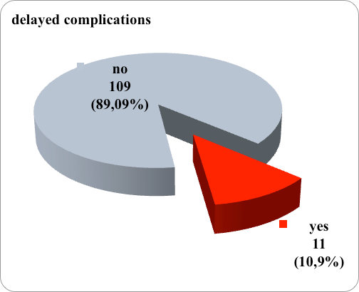 Regarding the type of late complications, in 5 patients dislocation of the catheter was registered, in 2 catheter thrombosis, in 4 occlusion of the catheter. (table 1)