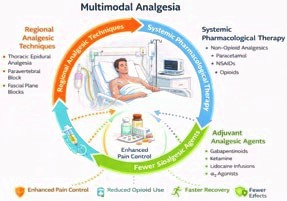 Multimodal analgesia is defined as planned and simultaneous application of multiple analgesic techniques and pharmacological agents that act through different and complementary mechanisms of action. The primary objectives of this approach are to enhance overall analgesic efficacy through synergistic effects, reduce perioperative opioid consumption, minimize opioid-related adverse events, and promote early functional recovery (1,3).