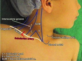 • Use color Doppler to avoid accidental vascular puncture (possible presence of dorsal scapular and transverse cervical arteries that branch from the subclavian artery and pass through the brachial plexus)